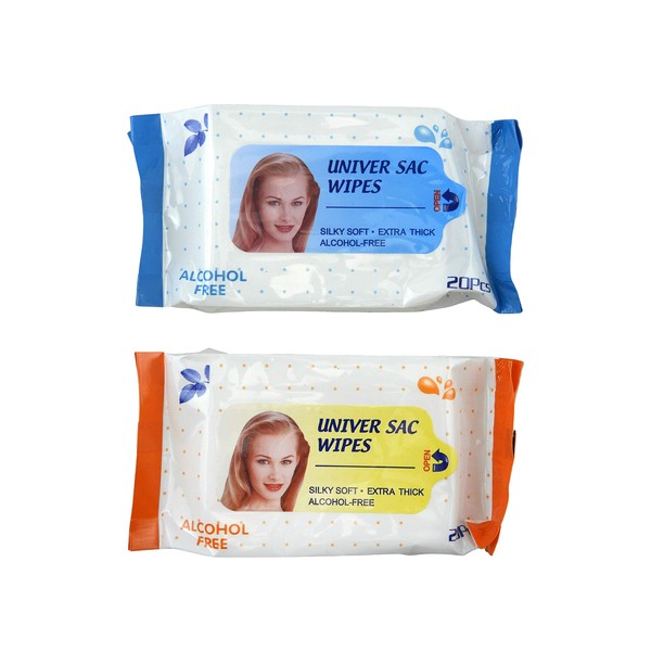 Pack of 2 Silky Soft Personal Cleansing Wipes - Alcohol Free - Travel Pack