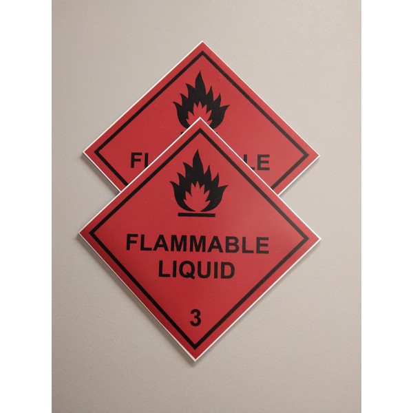 Pack of 2 strong Magnetic, flammable liquid 100mm x 100mm hazardous warning signs