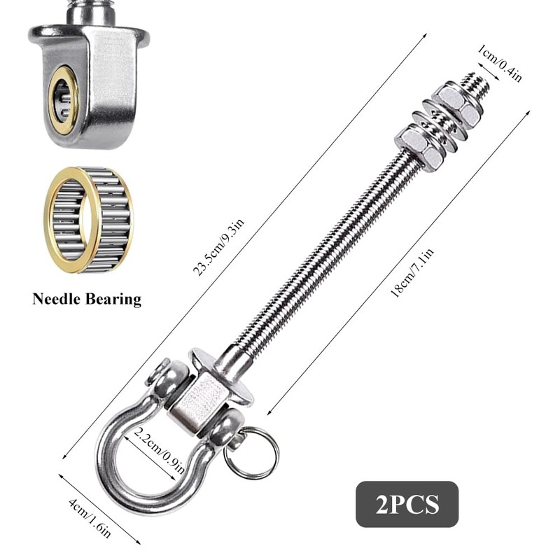 - Quiet bearing design for fluid swing: the swing connectors with integrated bearings and rubber rings guarantee silent swing. NO SQUEAKING - Perfect for ceiling hook applications inside and out. Ideal for swing suspension on beams or fitness equipment