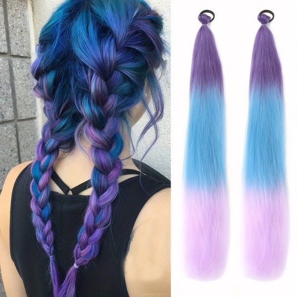 Pack of 2 Synthetic Hair for Braiding, Hair Strands for Braiding, Blue, Pink, Purple, Colourful Hair Strands, Children, with Comb, Suitable for Women and Girls Party, Music Festival, Party Styling