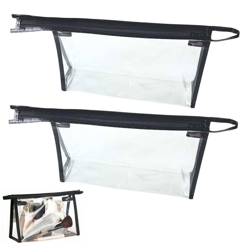 Pack of 2 Transparent Toiletry Bags, Waterproof PVC Cosmetic Bag for Hand Luggage, Meets EU and TSA Directives, 1 Litre Volume, Leather Reinforcement for Durability, Ideal for Travel