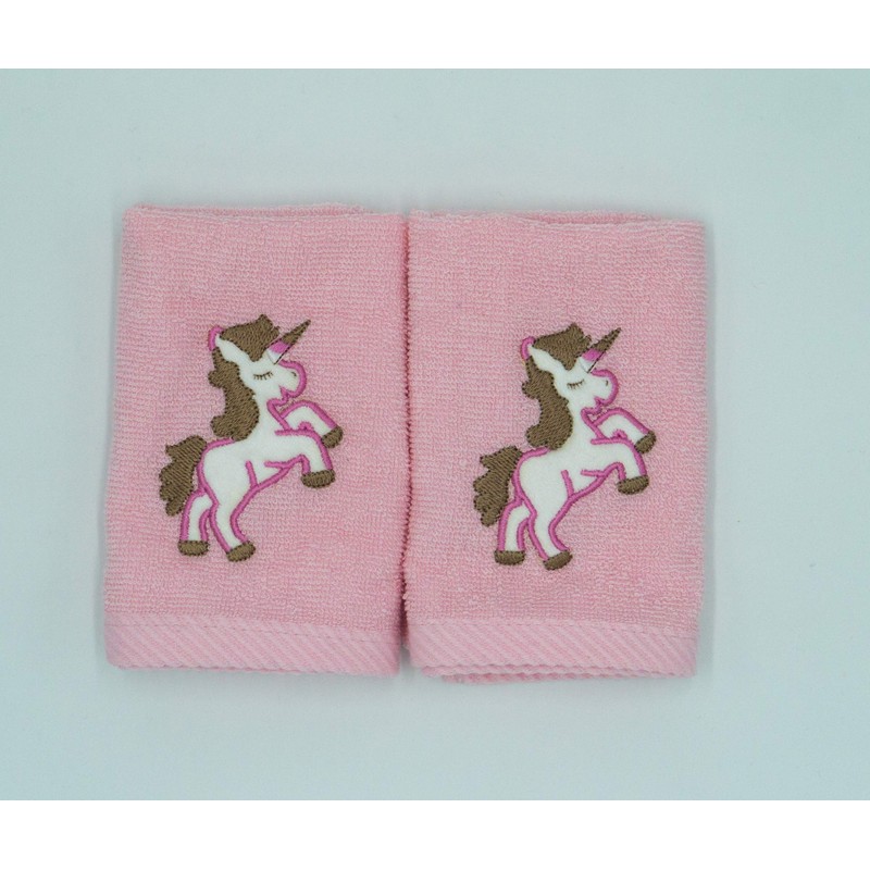 - Design: White Embroidered Unicorn on a Pink Flannel