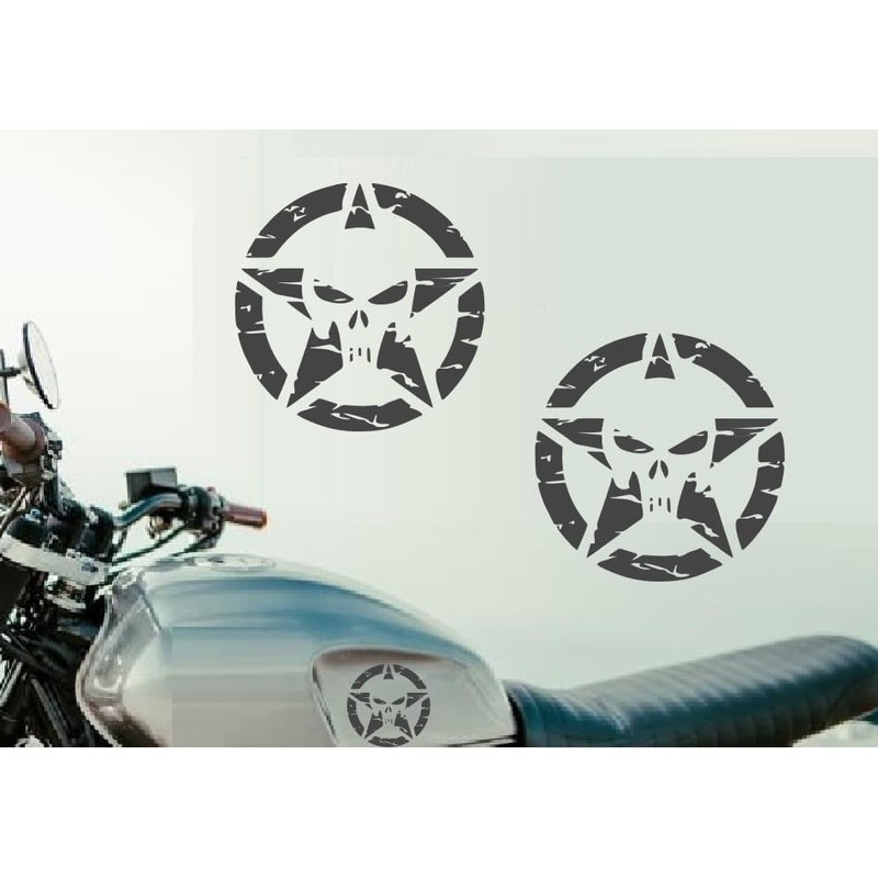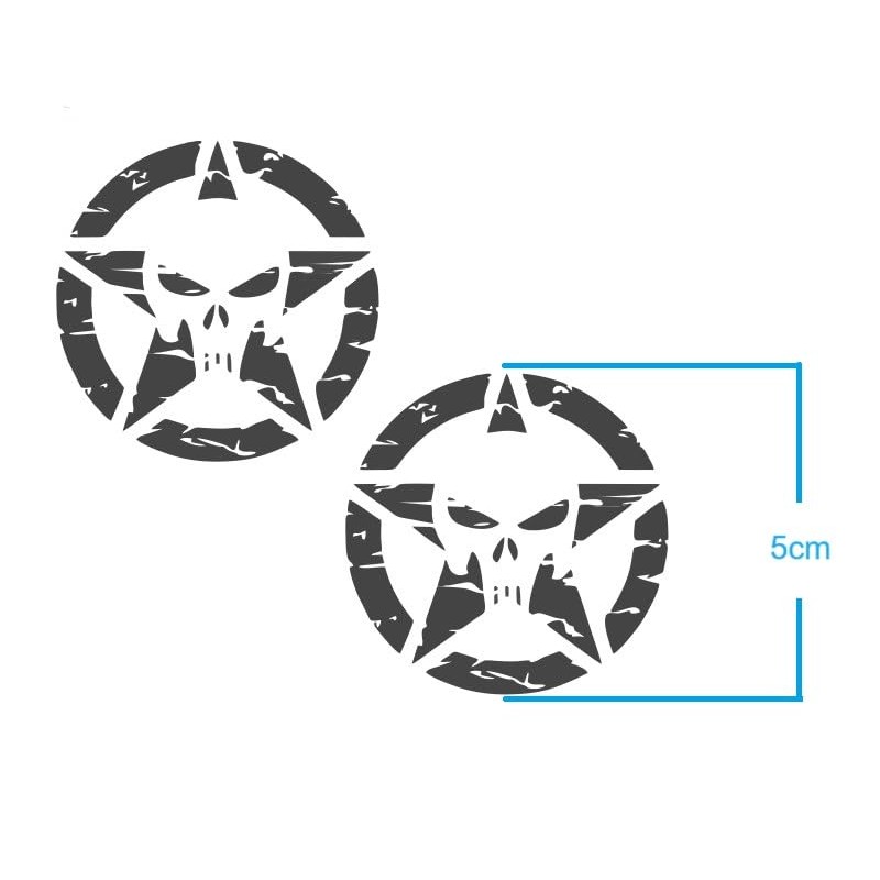 Pack of 2 US Star Stickers Retro Skull Star Stickers (RMPt5/2) (2 Pieces 5 x 5 cm)