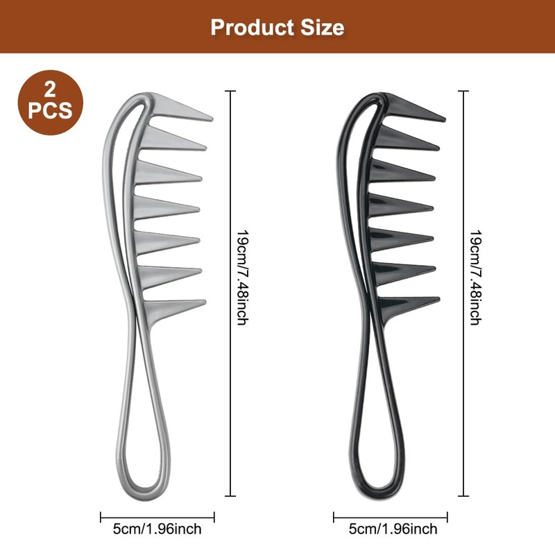 Pack of 2 Wide Tooth Combs, Hair Comb, Wide Tooth Comb, Professional Hairdressing Comb, Antistatic Coarse Zinc, for Women and Men, Curly Wet Wavy Hair Styling