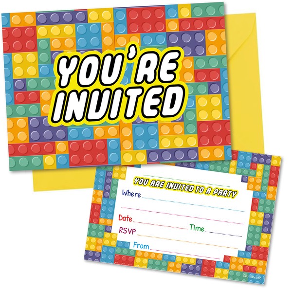 (Pack of 20) Building Block Birthday Party Invitations with Bright Yellow Envelopes