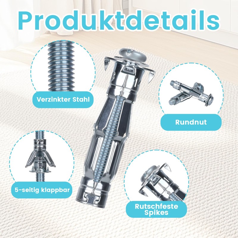 - Robust material for heavy load: these cavity dowels metal are made of high-quality carbon steel. Thanks to high temperature resistance and stability, they are ideal for heavy duty applications with cavity dowels or dowels for plasterboard, especially in drywall