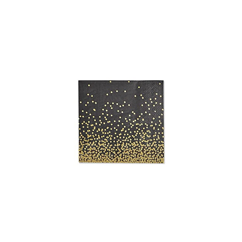 Pack of 20 Confetti Cocktail Size Paper Napkin Black Gold 5" x 5"