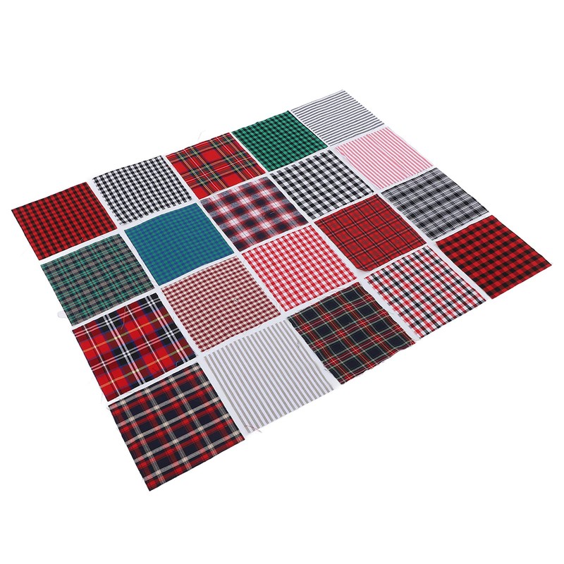 Pack of 20 Cotton Fabric Squares, Fabric Packs, Patchwork Fabrics, Cotton Cloth, Checked Fabric, 25 x 25 cm, Checked Fabric Scraps, Pre-Cut Fabric Scraps for DIY Crafts, Sewing, Quilting