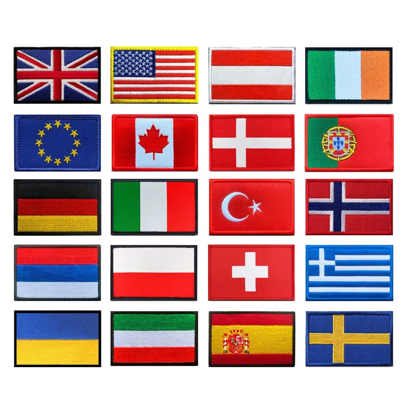 - Patch with nylon: 20 pieces 3.15 x 2 inches 8 cm x 5 cm European flags national flags tactical patch with hook closure on the back and a matching loop closure which makes it a great patch for you