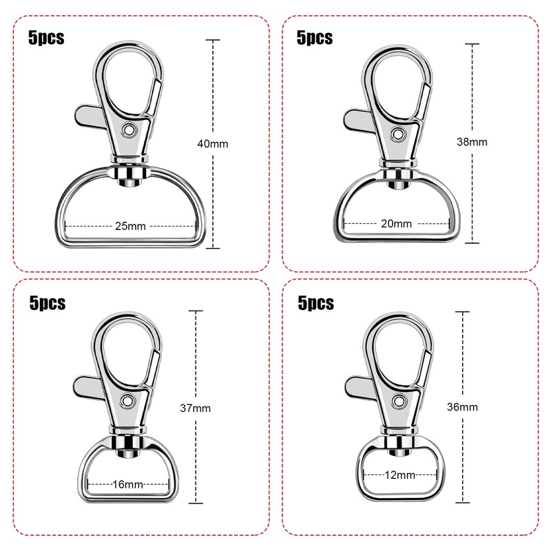 Pack of 20 Key Carabiner Swivel Carabiner Key Rings with D-Ring Key Rings Stainless Steel with 360° Rotating Eyelet Ring for Macrame Accessories and DIY Crafts (Inner Width 12 16 20 25 mm)