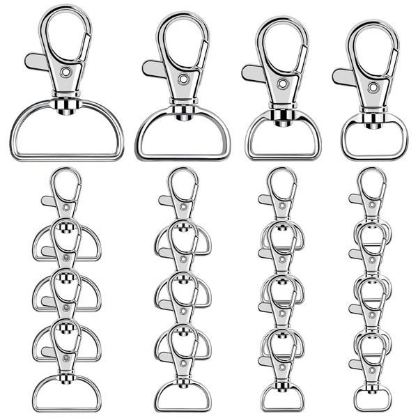 Pack of 20 Key Carabiner Swivel Carabiner Key Rings with D-Ring Key Rings Stainless Steel with 360° Rotating Eyelet Ring for Macrame Accessories and DIY Crafts (Inner Width 12 16 20 25 mm)