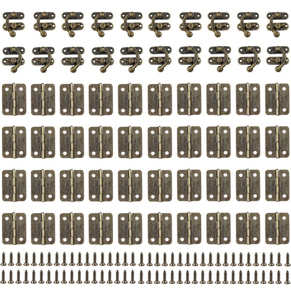Pack of 20 Latch Hook Hasp, 40 Pieces Hinges, Antique Clasps, with Screws, for Retro Crafts, Such as Retro Wooden Boxes, Gift Boxes, Wine Boxes, Tool Boxes, Woodworking