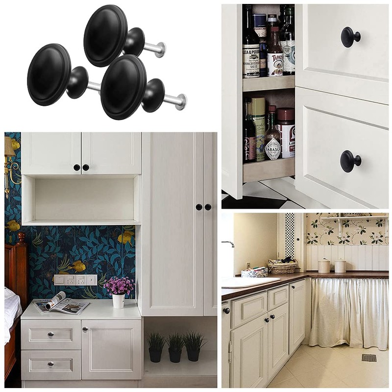 - Quantity: 20 pieces black cabinet door knobs. Each knob comes with a matching screw.