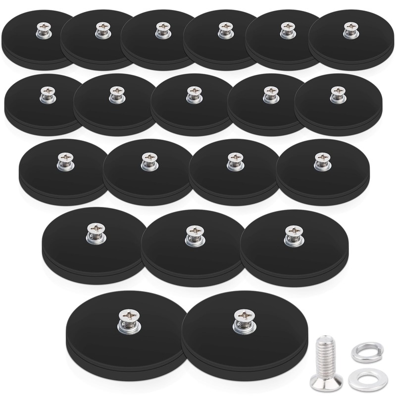 - Pack of 20 magnetic with thread, neodymium magnets with M4 threaded bolts, 43 mm rubberised neodymium magnets, extra strong