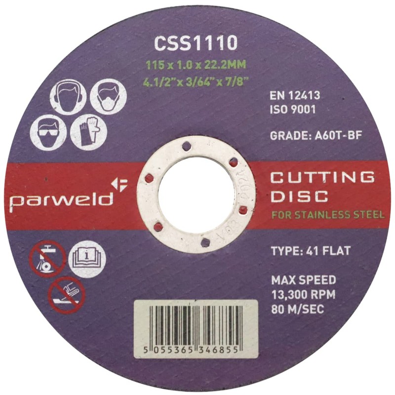 - Trade quality discs for cutting stainless & mild steel.