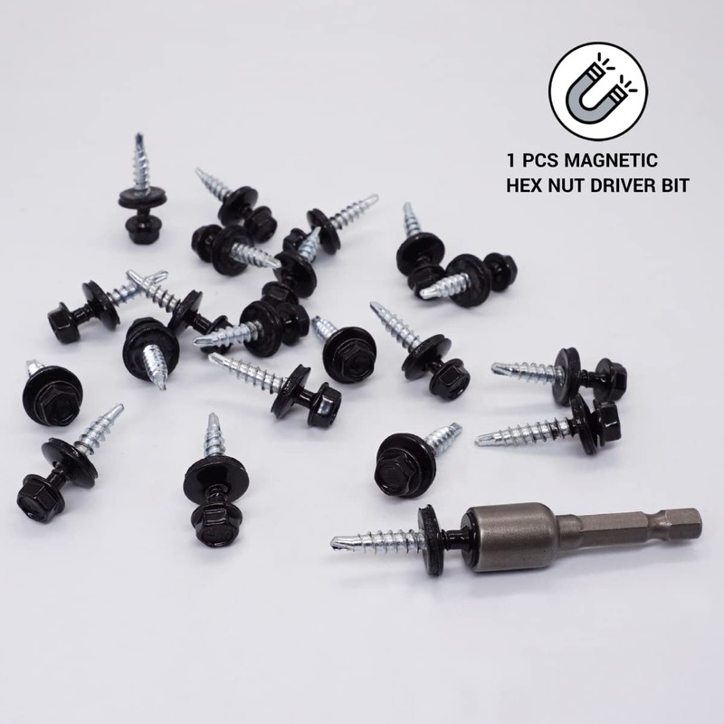 - ✔️ Packed: 20 pcs screws. Size: 4.8 x 28 mm. Screw head and washer colour: Jet Black (RAL 9005). 1 pcs magnetic hex nut driver bit is included. DIN 7504-K standard;