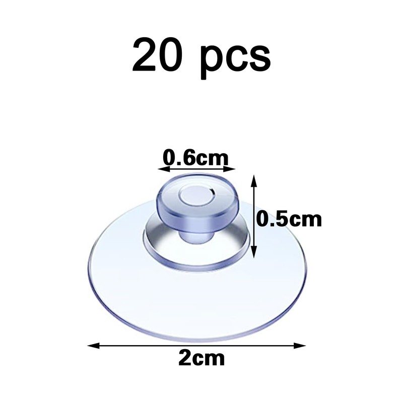 Pack of 20 Plastic Suction Cups, Diameter 20 mm, Transparent Suction Cups, PV...