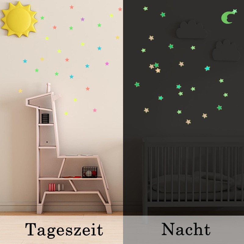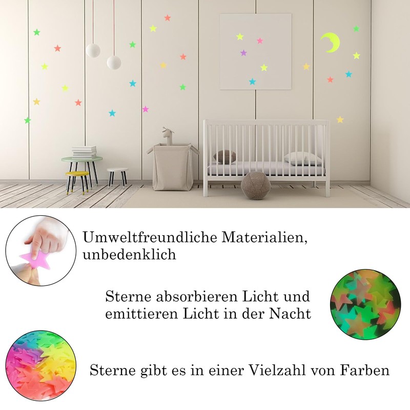 - Products include: with 200 3 cm colourful luminous stars and an 8 cm luminous moon, you can create your own beautiful starry sky and fall asleep in a dreamy atmosphere