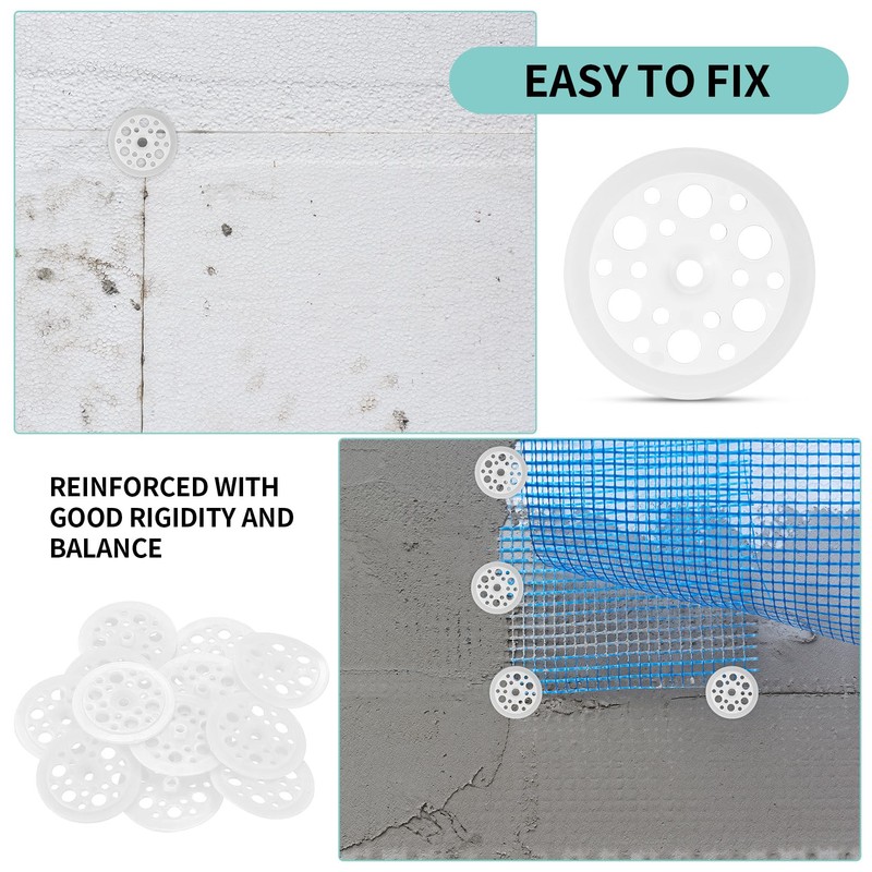 1. Insulation plate is made of high-quality plastic material with a diameter of 45 mm and a hole diameter of approx. 5mm The material is thick and retains its shape even under load and hardly deforms.