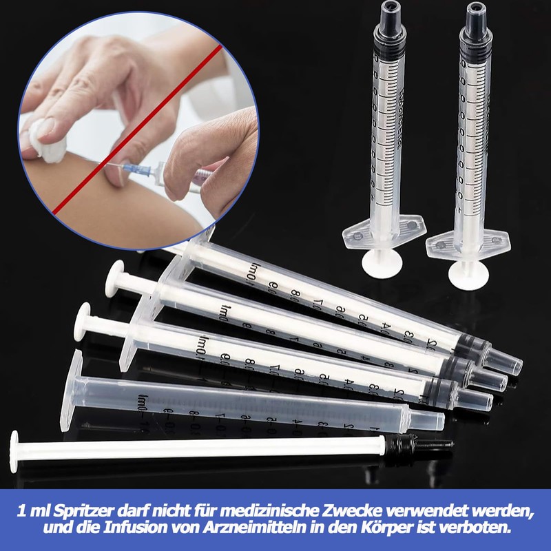 - Quality material: 1 ml syringe made of high-quality polypropylene plastic, sterile design, BPA-free, safe and odourless, individually sealed bag with cap, safe and reusable.
