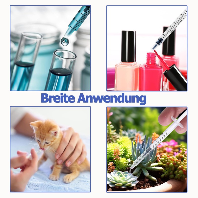- Wide application: the 1 ml syringe sterile is ideal for use in scientific laboratories, measuring liquids, watering plants, feeding pets, collecting colostrum and for industrial precision applications such as dispensing and refilling inks, adhesives, lip gloss, nail polishes, perfumes, etc.