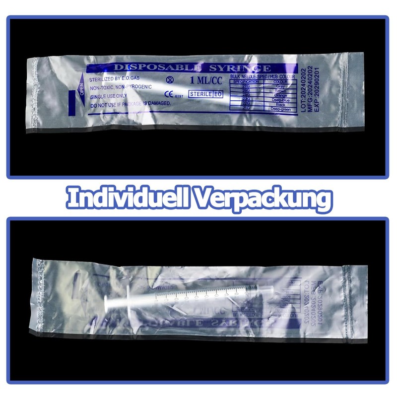 - Package includes: you will receive 24 pieces 1 ml syringes with 24 pieces closures, white, without needle, packed in sterile, individually sealed bags. The syringe is approx. 10 cm / 4 inches long.