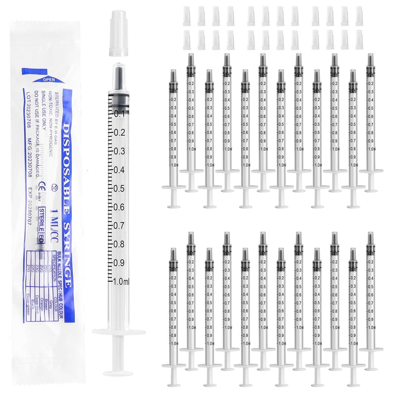 - Each 1ml syringe is made of high quality industrial grade polypropylene plastic, lightweight, all with caps, individually wrapped, safe and sterile.