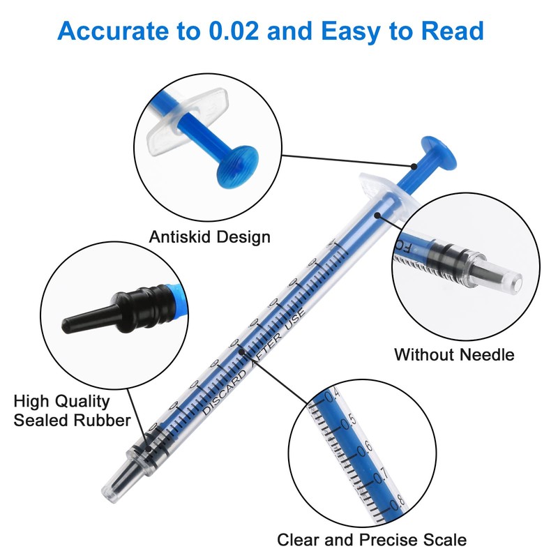 - High Quality Material The syringe is made of PP plastic, waterproof and durable, BPA free, safe and odorless, and easy to clean.