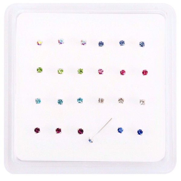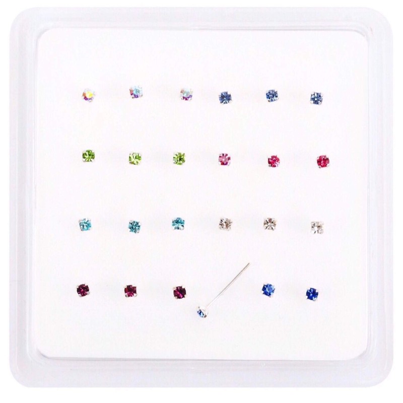 • 24 sterling silver nose studs 8 colour 3 of each colour