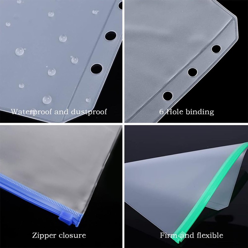 Function: waterproof and transparent, 6-hole binding, zipper design