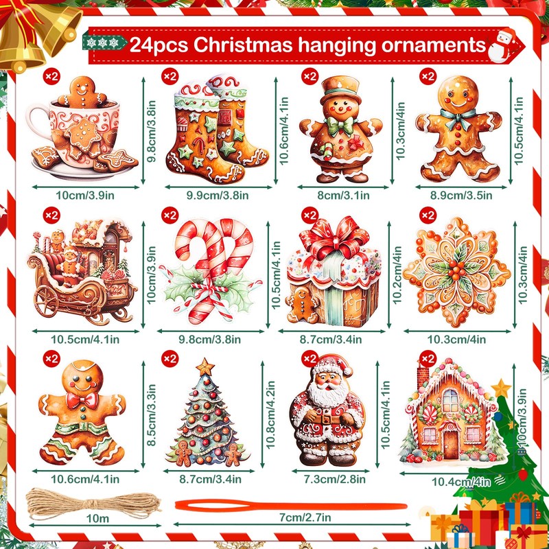 - Christmas tree decoration pendant: this Christmas tree decoration set contains 24 pieces gingerbread man Christmas decoration, a total of 12 different styles and styles, with strong Christmas elements and atmosphere that can be used to decorate the Christmas tree.