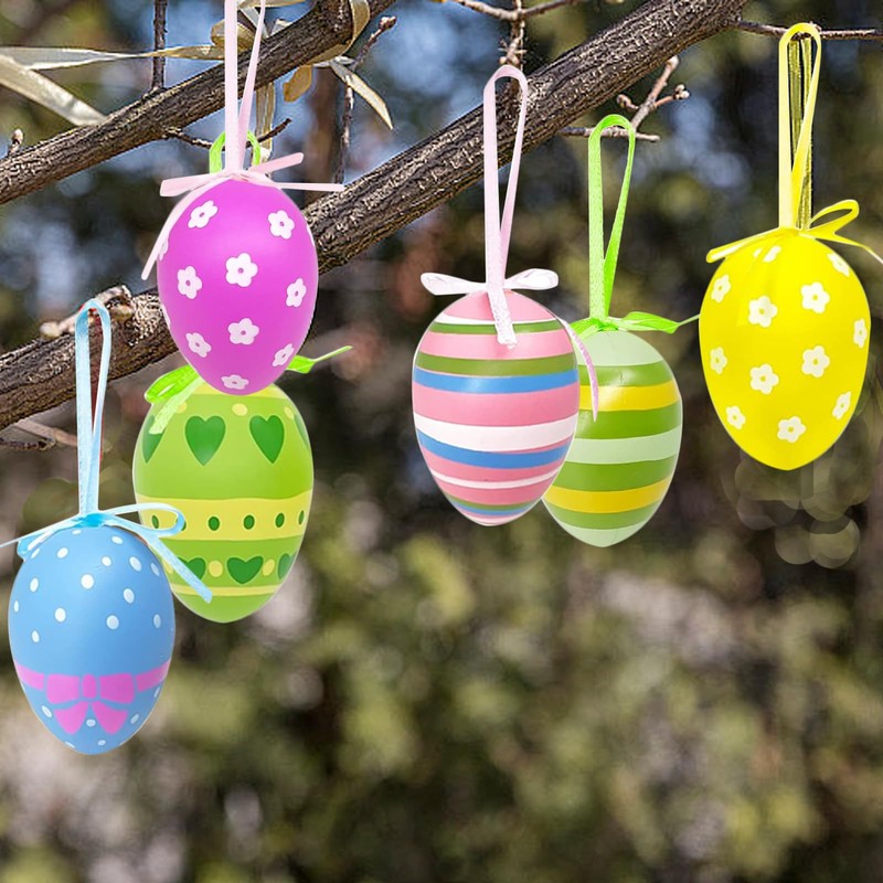 - Size and material: you will have 24 small Easter eggs, 8 colours. Each egg is 6 x 4 cm / 2.4 x 1.6 inches, the appropriate size can be hung in any place. These beautiful hanging Easter eggs are made of high quality plastic material, which is not easy to damage, lightweight, easy and safe to hang.