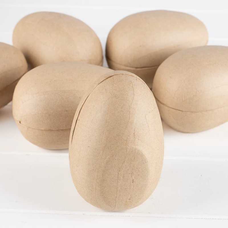 - We are proud to use recycled paper materials in the production of our paper mache eggs, making them a great choice for crafters who care. Plus, to ensure a consistent egg shape, each egg features a plastic center core that is also made from recycled materials.