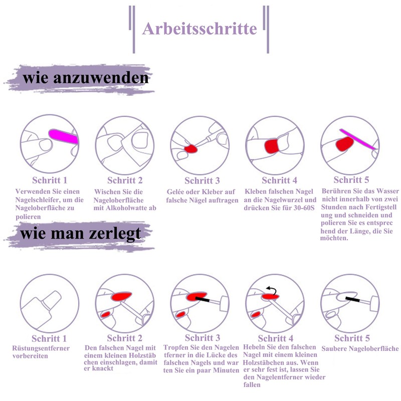 - Easy to use: just choose the nail piece that suits you, polish the nail bed, insert the jelly glue we give you, and then press the nail for 30 seconds to get your favourite French nail. Due to the limited use of jelly glue, we recommend you use your own glue.
