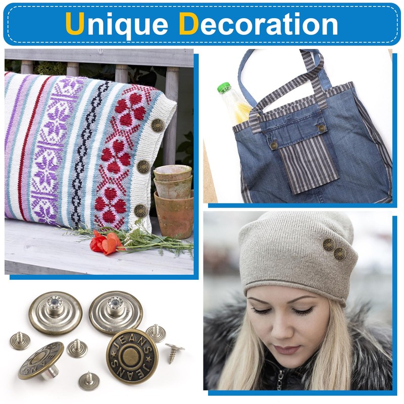 - Reliable material: brass jeans buttons are mainly made of metal, are robust and usable, have a smooth and delicate texture, are not easy to fade, break, bend or corrode and can be used for a long time.