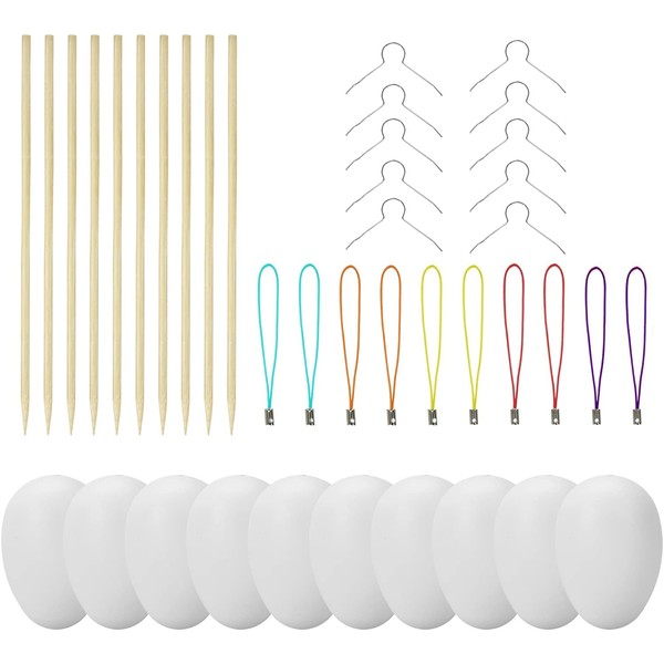 Pack of 25 Easter Eggs, Plastic Easter Eggs, Decorative Eggs, Easter Eggs, with 25 Hangers for Easter Eggs, 10 Bamboo Skewers, 25 Chains, Decorations for Easter Hunting, Living Room, Garden, Tree