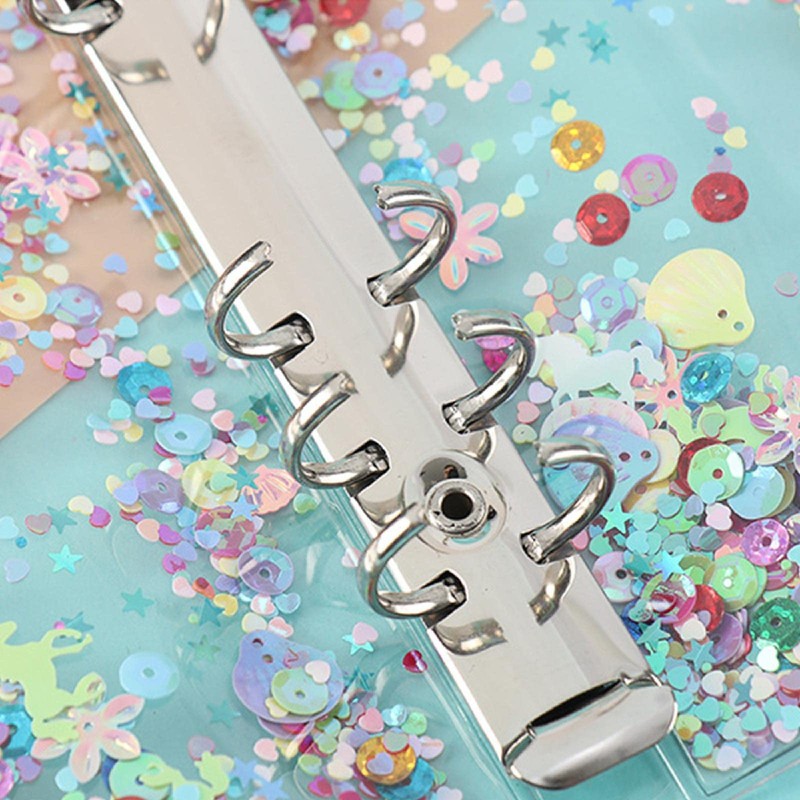 - Exquisite design: This refillable paper PVC folder has fancy glitter sequins and colourful quicksand chips, beautiful and stylish. The press stud on the booklet prevents notes from falling off. And the clear transparent design of the case helps to quickly check the contents in the notebook.