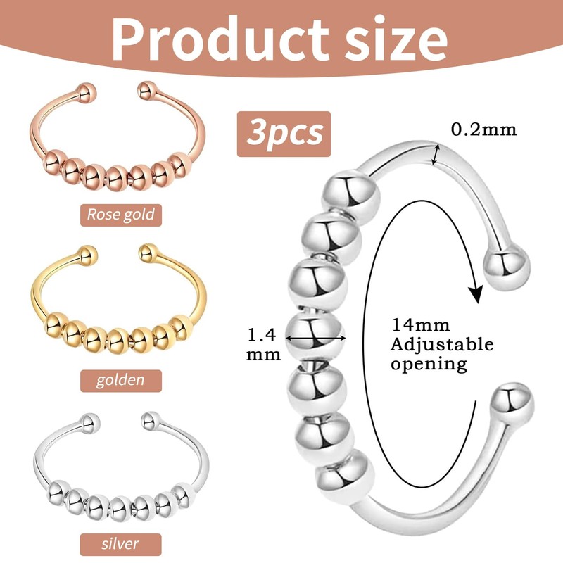- Product specifications: Our set contains 3 fidget rings in different colours - silver, gold and rose gold to give you more choices. Each fidget ring features nine beads.