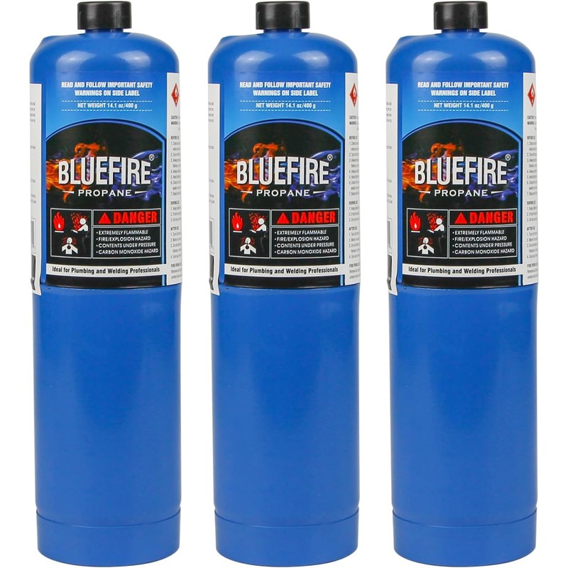 Pack of 3, BLUEFIRE Standard Propane Gas Cylinder Canister Welding Brazing Soldering Fuel Gas for HVAC Plumbing Cooking Grilling and Camping 1 lb Small Propane Tank for Propane Torch Head Weed Torches