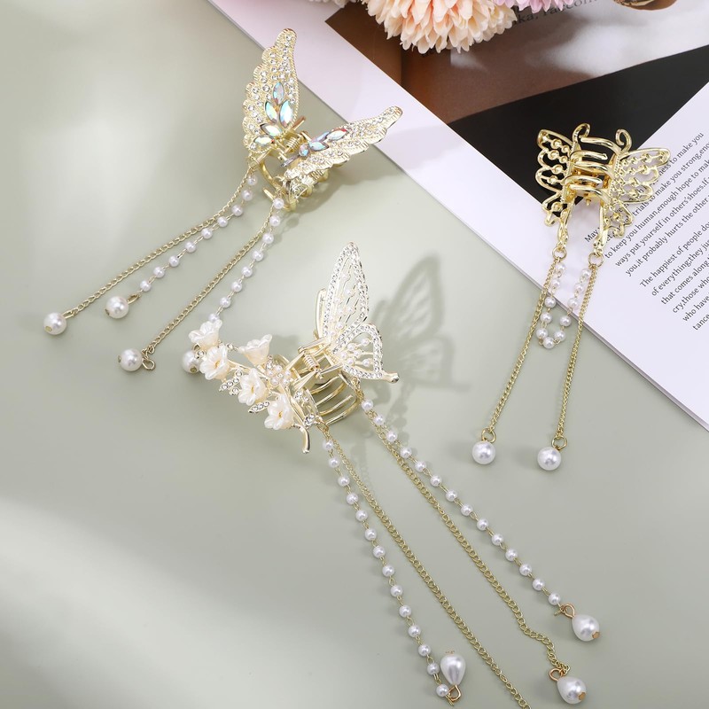 Elevate your style with 3 elegant butterfly-shaped clips in unique designs, crafted from premium alloy with a polished finish for lasting shine