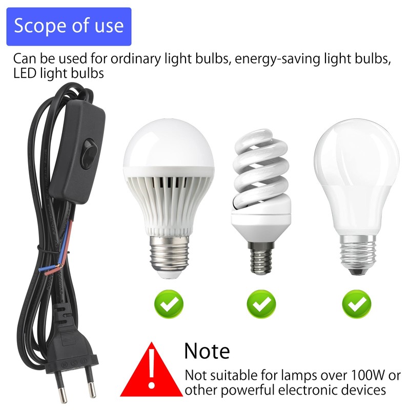 - EASY INSTALLATION Our connection cables with plugs are easy to install and use, thanks to the included switch and plug, just plug the plug into the socket and turn the light on and off via the switch. Provides a simple and hassle-free solution for controlling lighting.
