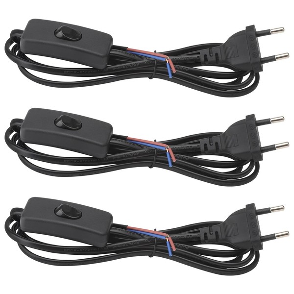Pack of 3 Cable with Plug, 1.8 m Cable with Switch, Connection Cable with Plug, Cable with Switch and Plug, Power Cable with Switch, Supply Cable with Switch for Lamps, Table Lamps, Floor Lamps