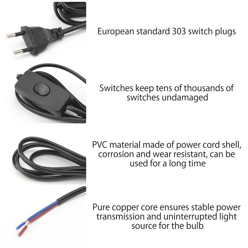 - HIGH QUALITY MATERIALS Our power cords with switch are made of high-quality pure copper wire core and insulated PVC material, the copper wire core ensures stable power transmission and uninterrupted light source of the bulb, and the PVC material shell makes the corded lamp base not easy to corrode and wear resistant. The cable with switch is robust and durable, long service life.