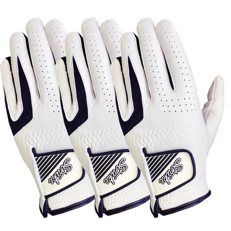 Pack of 3 Cabretta Leather Men Golf Gloves – for All Weather Conditions – Soft Feel Grip & Comfortable - Left Right Handed Golfer - for beginners & Professionals (L, White, Right hand)