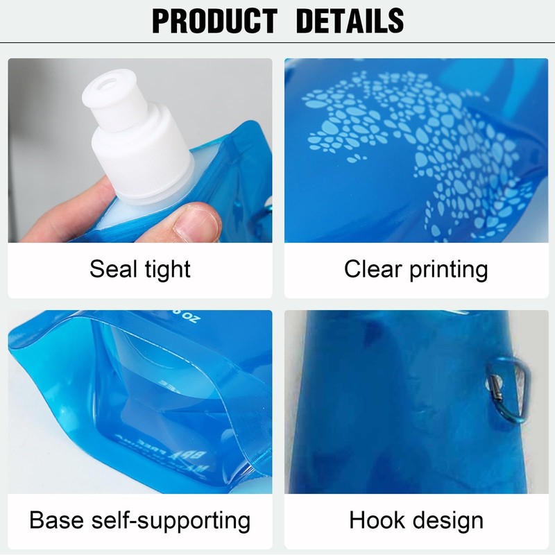 - Reusable drinking water bags: foldable drinking bottle is a great alternative to fragile glassware, durable and washable, can be reused after careful cleaning.