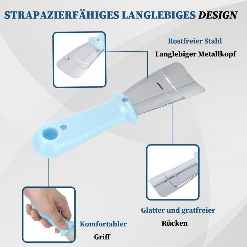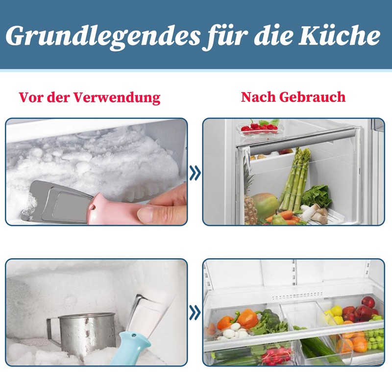 - Contents of the set: you will receive 3 multifunctional de-icing scoops in blue, green and pink. The de-icing spatulas are made of stainless steel + PP plastic, wear-resistant and durable, an indispensable product for the kitchen.