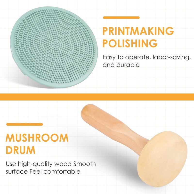 Pack of 3 Lino Print, Robust Pressure Roller with 1 Mushroom Roller and 1 Engraving for Print Graphics, Stamping, Printing, Inks, Wallpaper and Crafts (3.5 cm, 6 cm, 10 cm)