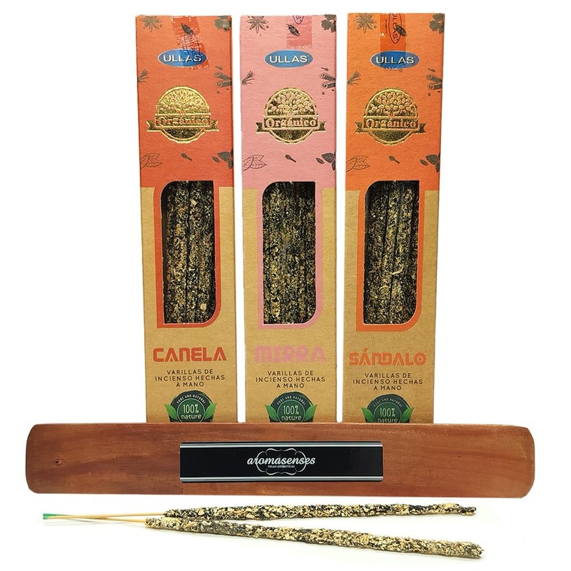 Pack of 3 Natural Organic Ullas Incense Sticks + 1 Aroma Bar (Cinnamon - Myrrh - Sandelo)