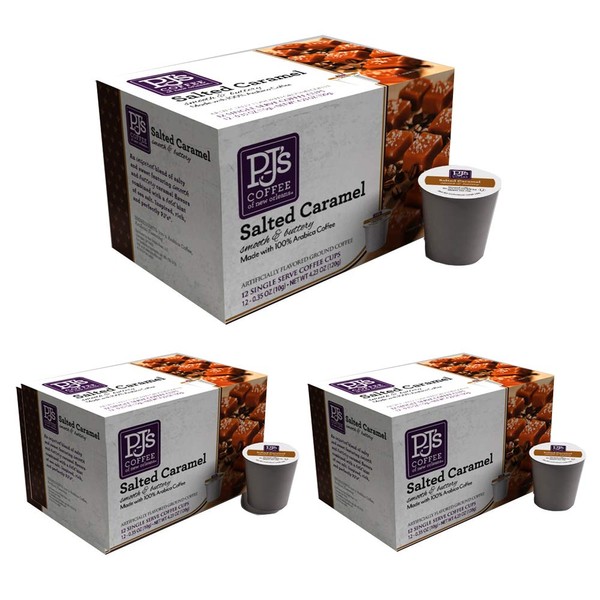 Pack of 3, PJ's Coffee - Salted Caramel Single Serve Cups, 12 Count boxes
