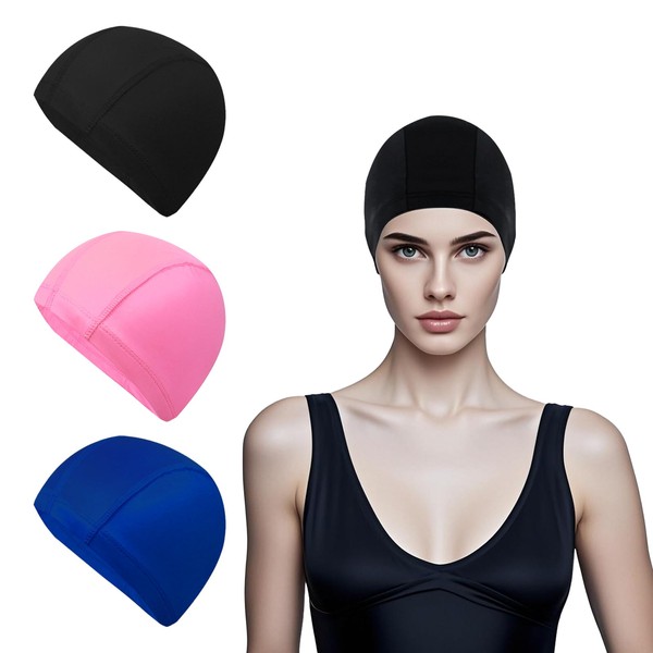 - Package includes: you will receive a set of 3 high-quality polyester swimming caps in a versatile choice of colours: classic black, bright pink and cool blue. These fabric swimming caps have been developed for comfort and durability and are perfect for all swimmers.